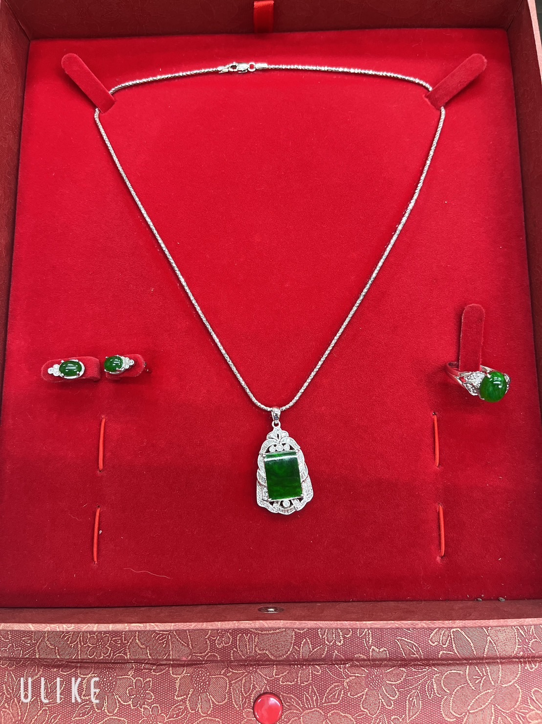 翡翠鑽石-戒指-耳環-項鍊整組